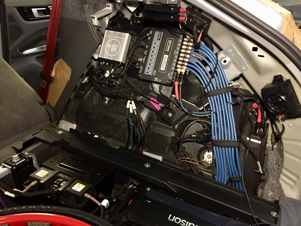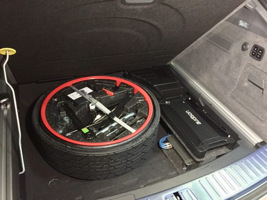 Все усилители и процессор, а также, адаптер MOST шины расположены в багажнике под обшивками. Такое расположение дало минимальную длину межблочных кабелей.